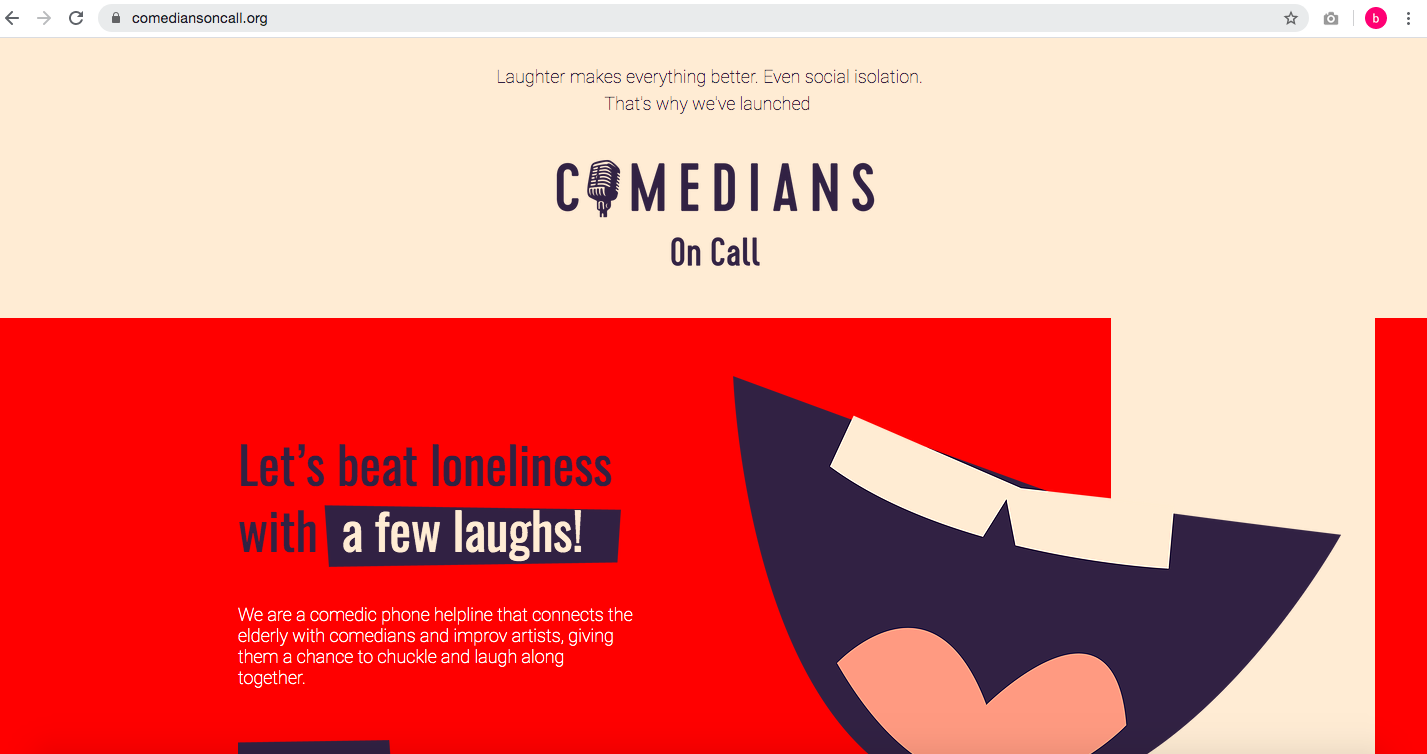 That's why we’ve launched, Comedians on Call. A comedic phone helpline connecting seniors to comedians and improvisers...to help them cope with social isolation with a few laughs.